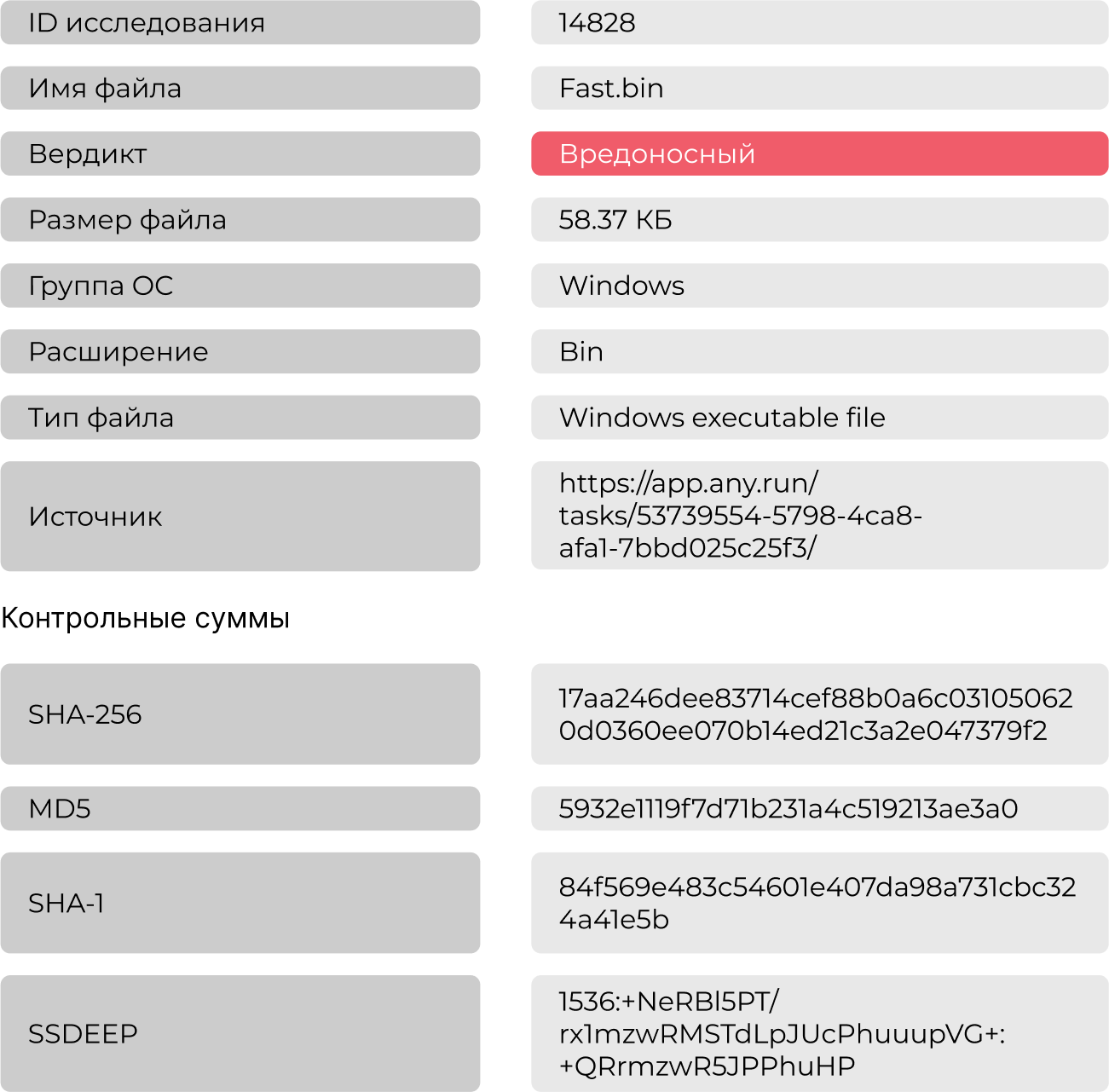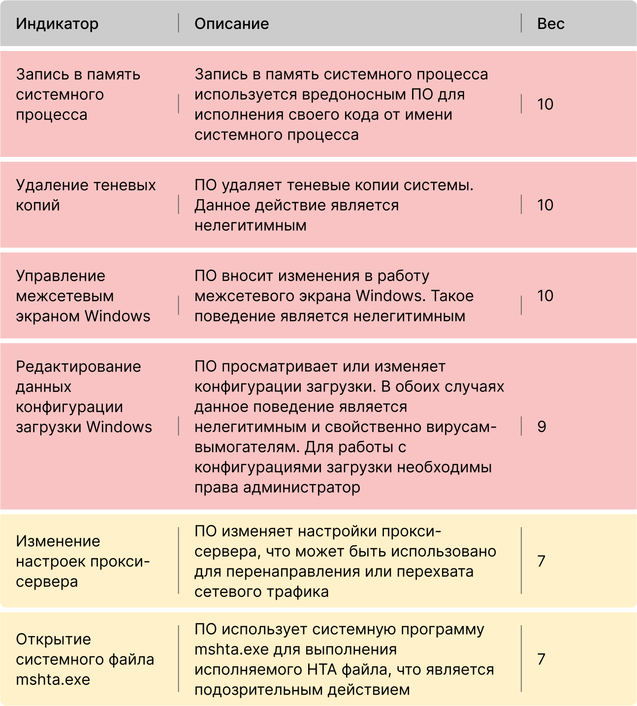 Подозрительные и вредоносные индикаторы динамического анализа, зафиксированные в процессе анализа, представлены в таблице 2: