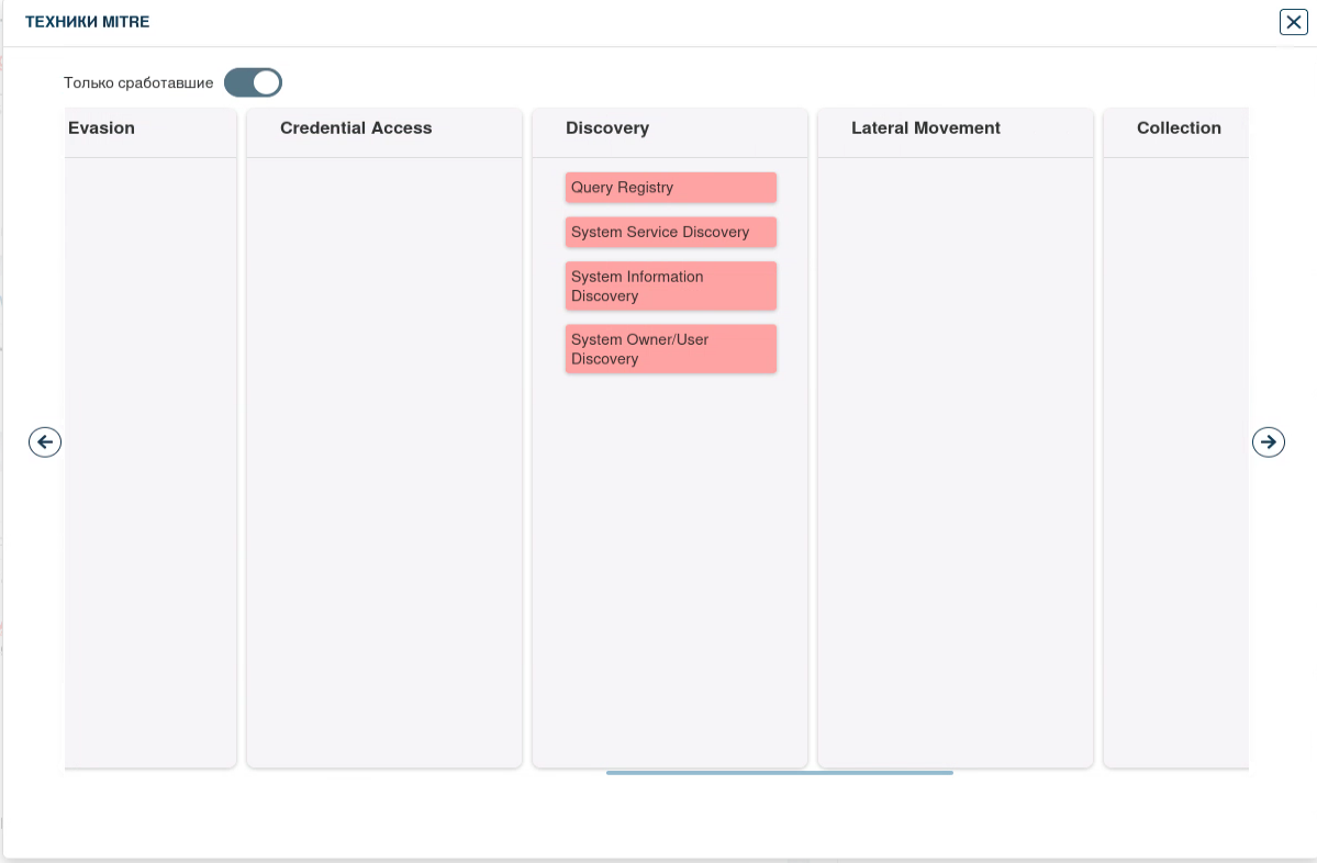 Более подробное описание сработавших техник MITRE: