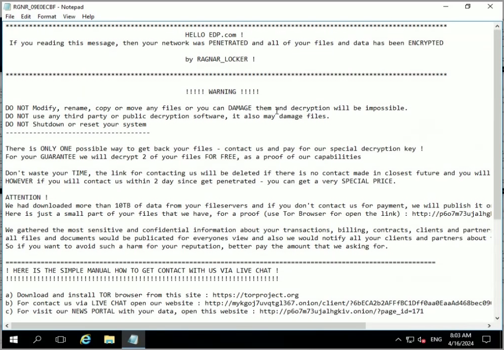 Отчет по анализу «RagnarLocker»