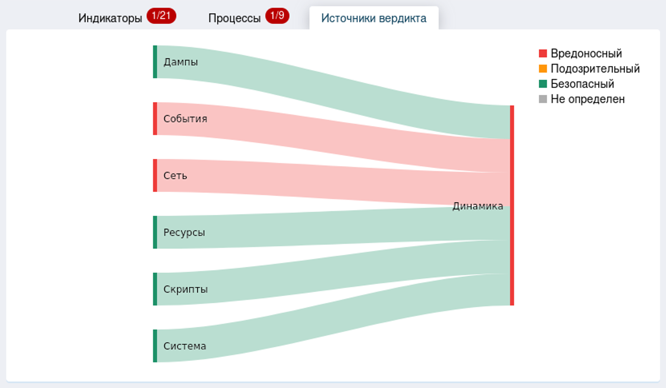 С вкладкой «Источники вердикта» стоит просто ознакомиться, она несет в себе информацию о том, какие методы и модули статического анализа выдали вердикт после проверки данного файла.