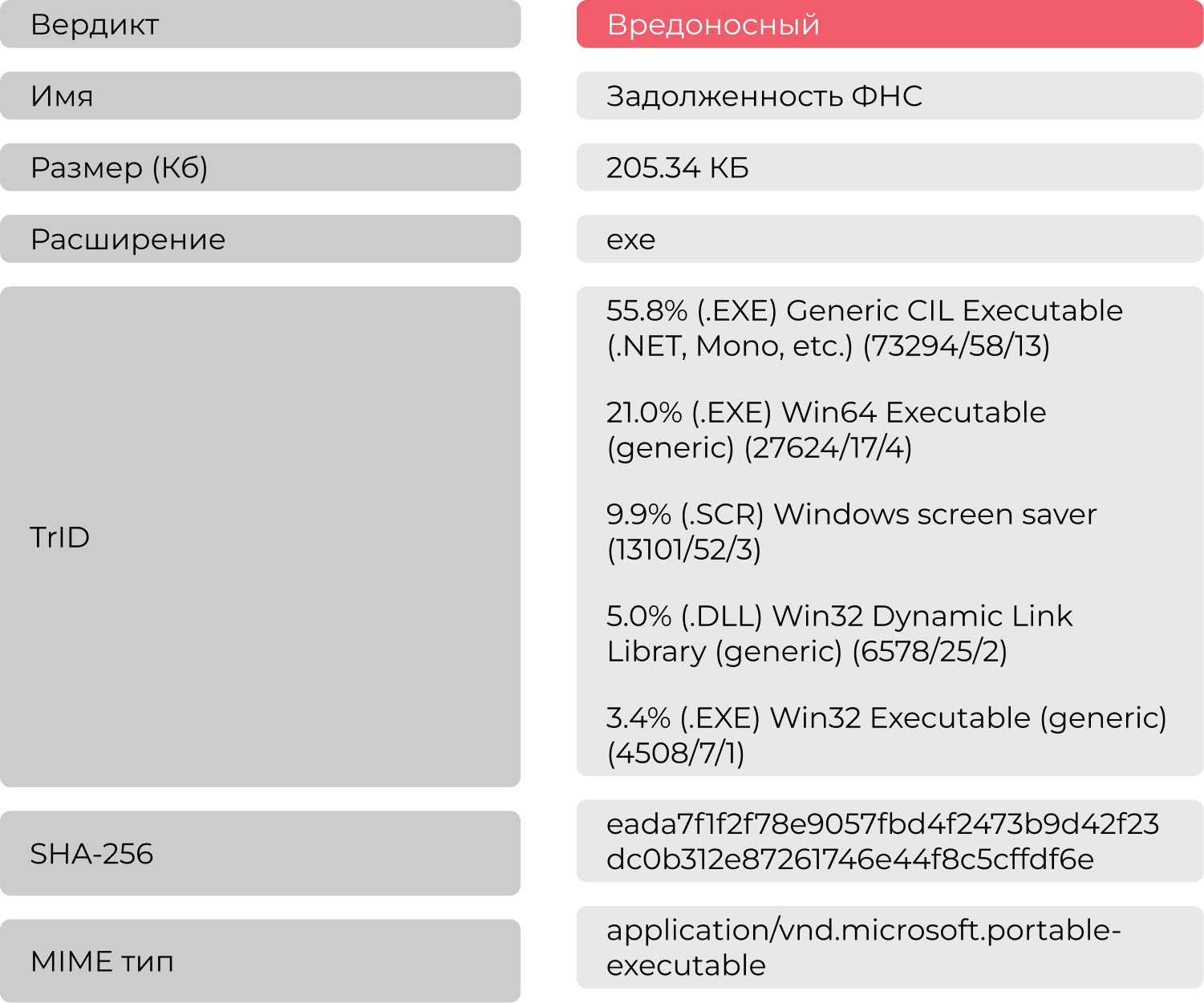 На анализ в систему Афина пришел исполняемый файл с расширением .exe. Общая информация собранная по файлу представленная в таблице Таблица 1.