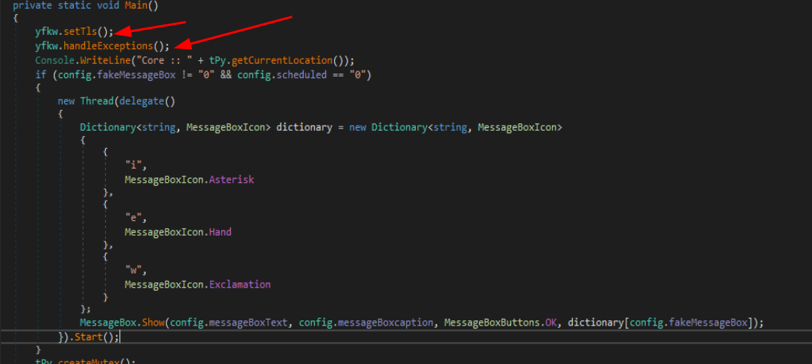 ВПО устанавливает TLS 1.2 версии и создает отладчик, собирающий все ошибки в файл логирования, который автоматически создается в системной директории «%TEMP%». У ВПО также имеются инструкции по созданию окна с сообщением, трех типов: информационное, предупреждение и ошибки.