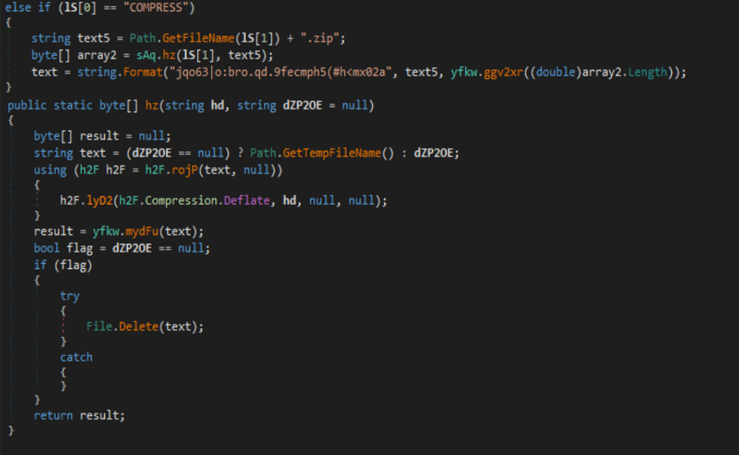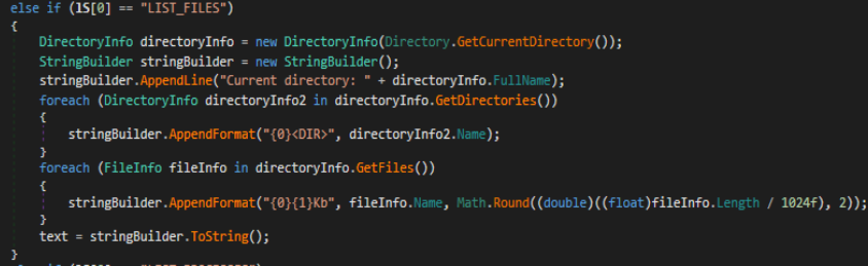 При получении команды «DPAPI» вызывает метод для дешифрования при помощи Widnows Data Protection API – CryptoProtectData. В качестве аргумента команды передаются данные, требующие дешифрования с машины жертвы.