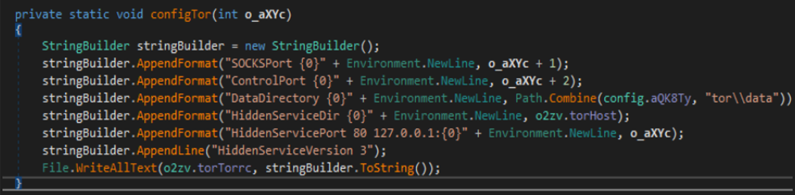 SOCKSPort <port> + 1 ControlPort <port> + 2 DataDirectory %LOCALAPPDATA%/zxqaiiy6en/tor/data HiddenServiceDir %LOCALAPPDATA%/zxqaiiy6en/tor/host HiddenServicePort 80 127.0.0.1:<port> HiddenServiceVersion 3